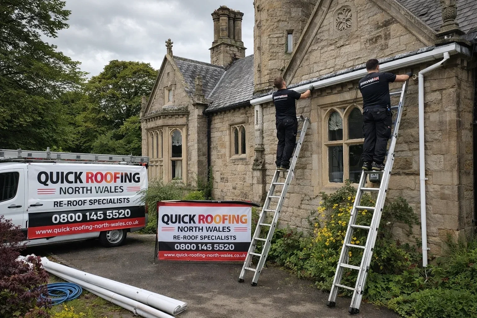 📞 Contact Quick Roofing North Wales today for urgent advice or a free emergency guttering assessment anywhere in North Wales.